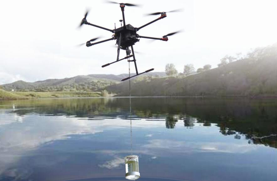 傳統的水體監測,如果取水樣本在離河流、湖泊岸邊較遠的位置,通常需要乘坐小型船舶到達取水位置,效率低、風險大、成本高。無人機通過搭載啟飛應用開發的無人機取水模塊,結合地面站系統可以在多個指定 GPS 坐標水域進行水體取樣,安全高效。從而實現在人力不便接近的地點,高效安全的取水作業。
